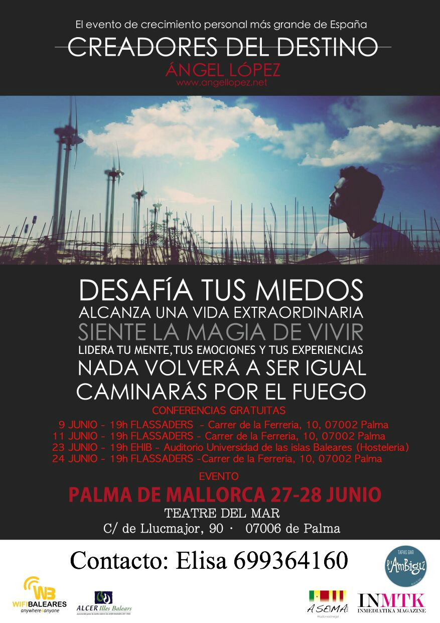 ¡Vive el mayor evento de crecimiento personal en España hasta hoy! que ha cambiado la vida de miles de personas ¡No te lo puedes perder! Con la ayuda del coach Ángel López conseguirás ir a por la vida que mereces. También conferencias gratuitas durante la semana. Reserva tu plaza ya. Información: 699364160