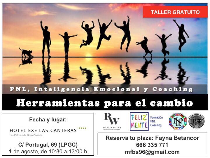 Ramón Walls, te enseña herramientas para el cambio, impartirá mañana sábado día 1 un TALLER GRATUITO PNL, INTELIGENCIA EMOCIONAL Y COACHING en Las Palmas de Gran Canaria y el próximo 8 de Agosto CLAVES PARA UNA VIDA PLENA PNL, INTELIGENCIA EMOCIONAL Y COACHING . Todos los detalles en nuestra entrevista, ¡no te la pierdas!