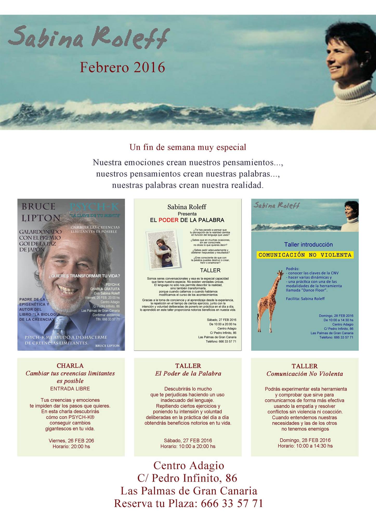 En agenda conexión Amare, hablamos con Sabina Roleff , ella será la encargada de realizar un taller en Gran canaria de introducción a la COMUNICACIÓN NO VIOLENTA. Será el 28 de Febrero, domingo de 10 a 14:30h. No se pierdan su entrevista donde conoceremos más detalles sobre este taller.