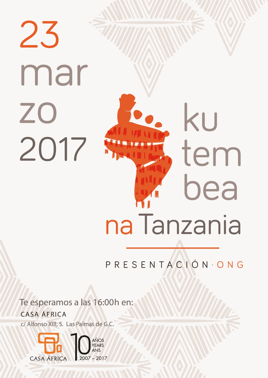 Otro de los actos importantes en Gran Canaria que tendrá lugar esta semana es la presentación en Casa África, el jueves 23 de marzo a las 16h, de una nueva ONG llamada KU Tem Bea, Na Tanzania. Su presidenta Amalia López, nos dará todos los detalles de esta nueva ONG creada en Canarias.