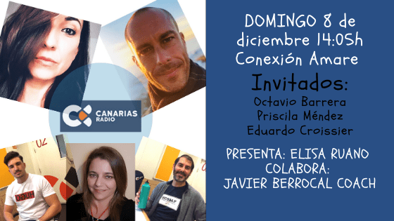 ¡Es una alegría volver a estar contigo cada semana! Te esperamos mañana domingo 8 de diciembre a las 14:05 (hora canaria) en Canarias Radio La Autonómica con nuestro programa número 154 de “Conexión Amare”, con repetición el miércoles 11 de noviembre a las 20:30h.