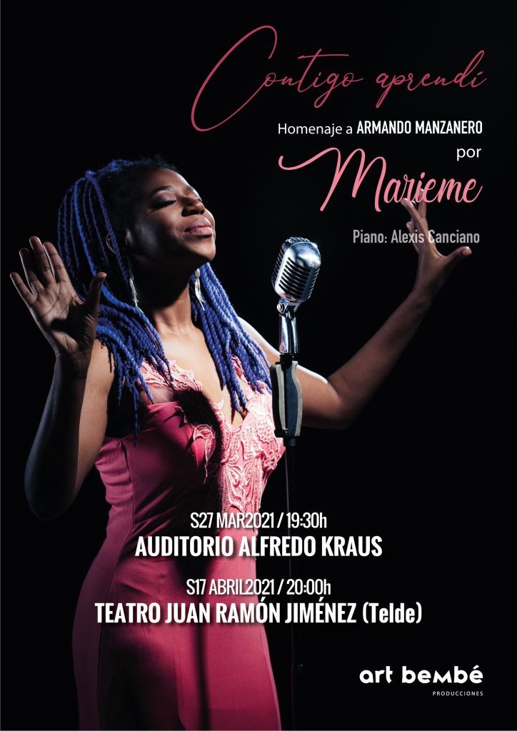 En agenda Conexión Amare hablaremos con Marieme Abdoulaye, ella es la encargada de poner voz al espectáculo «Contigo Aprendí» que rinde tributo al compositor mejicano Armando Manzanero fallecido recientemente. La próxima cita es el 17 de abril sábado en el teatro Juan Ramón Jimenez en Telde.