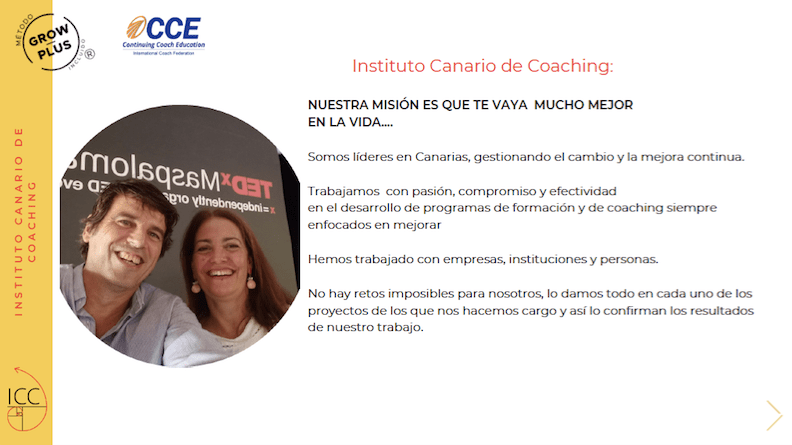 Volvemos con el espacio de Instituto Canario de Coaching y en esta ocasión contamos con Isaac Villanueva, fundador y formador de ICC y Virtudes Sarmiento directora de ICC. Nos hablarán sobre el próximo evento presencial en Las Palmas de Gran Canaria «TOP COACH 3D». Podrás conocer las claves Imprescindibles para ser un Top Coach en 3 Intensos, será del 17 al 20 de Noviembre, si necesitas más información puedes contactar con ICC a través del teléfono 676 58 18 81 o al correo formacion@institutocanariodecoaching.es